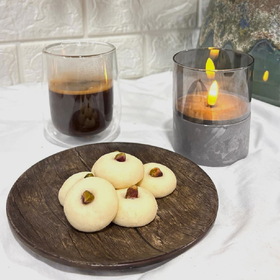 غريبة بالفستق الحلبي مع نكهة الفانيليا، ومزين بالفستق