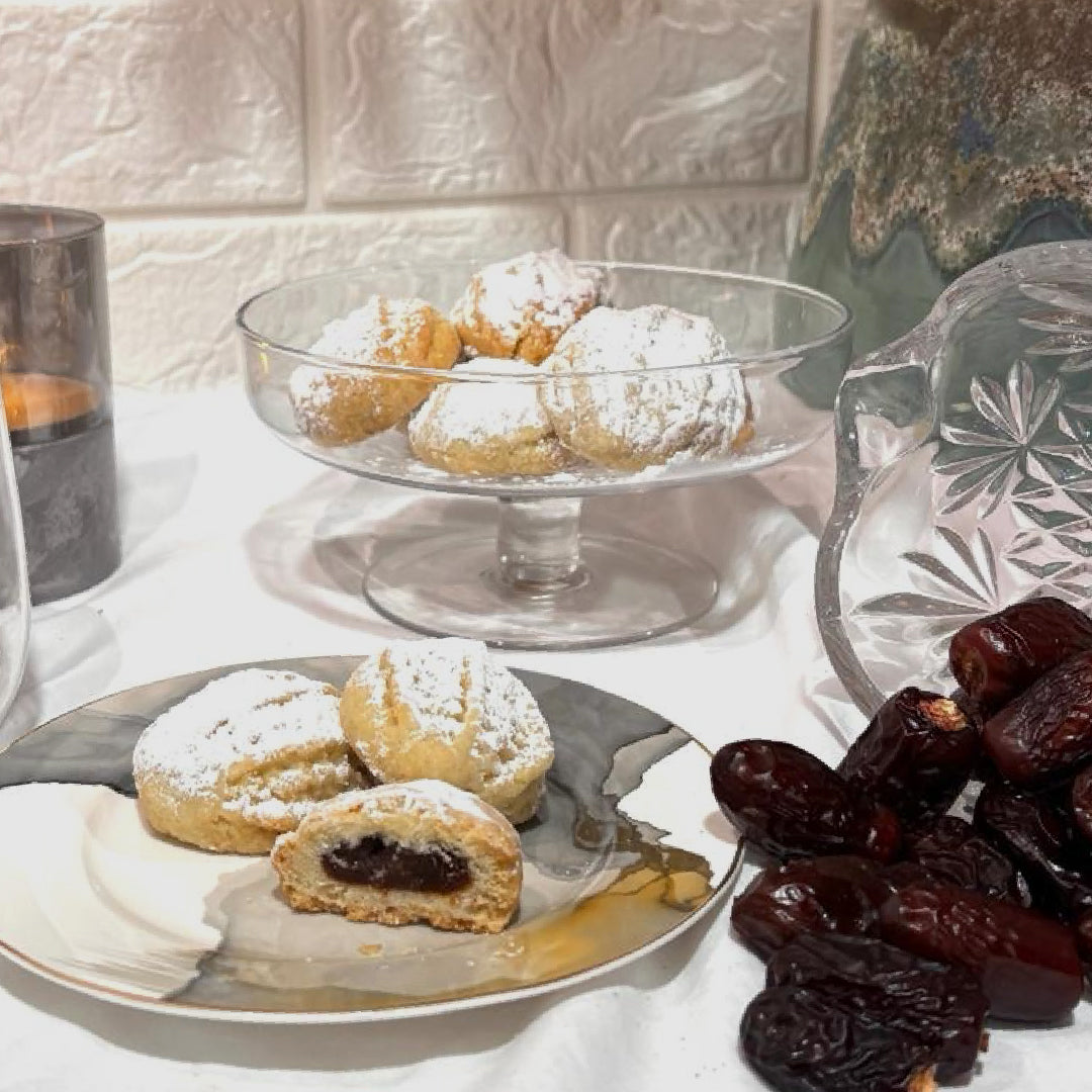 كعك تقليدي محشو بالتمر، مصنوع من وصفتنا التقليدية ويغطى بالسكر البودرة